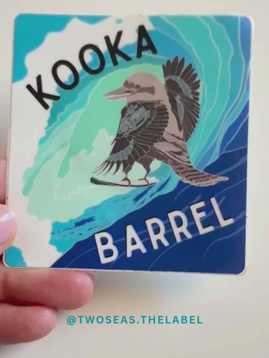 Meet the ultimate surf-side bird: the Kookabarrel! This cheeky sticker features a kookaburra catching the perfect barrel, bringing Aussie waves and wild energy to your laptop, water bottle, or board.